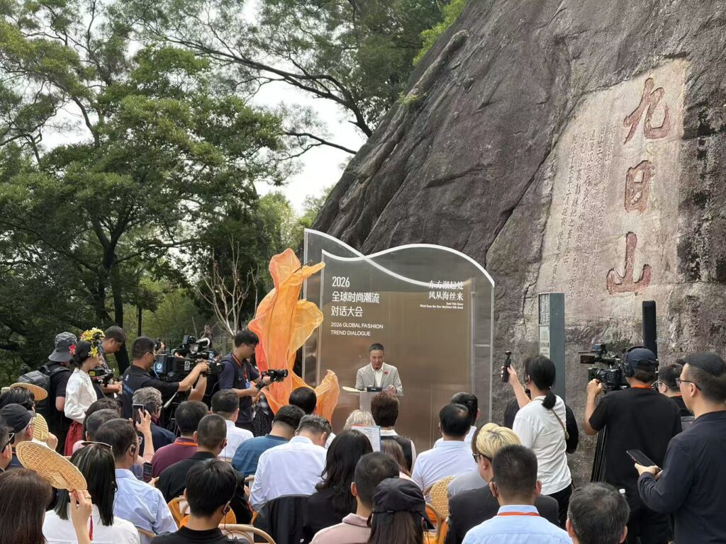 九日山,作为宋元时期东方第一大港祈风典礼的所在地,见证了海上丝绸之路的辉煌。本次大会创新采用”移步换景、拾级而上、思想登封”的沉浸式形式,将整座山打造为沉浸式时尚叙事现场。从山门到摩崖石刻,从石阶到山顶对话场景,形成独特的交流动线,让时尚对话与海丝文脉深度交融。